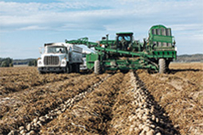 収穫の時期になると、ポテトが生理学的に十分成熟しているか、糖度が貯蔵や加工に適したレベルにあるかを徹底的に精査します。米国のポテト生産者は、収穫、出荷、輸送の過程におけるポテトへの損傷を防ぐため、最先端の専用機材を保有しています。収穫物は、米国農務機関によって検査後等級をつけられます。収穫後、ポテトは加工工場に直接運ばれるか、温度・湿度・空気循環が管理された施設で貯蔵されます。